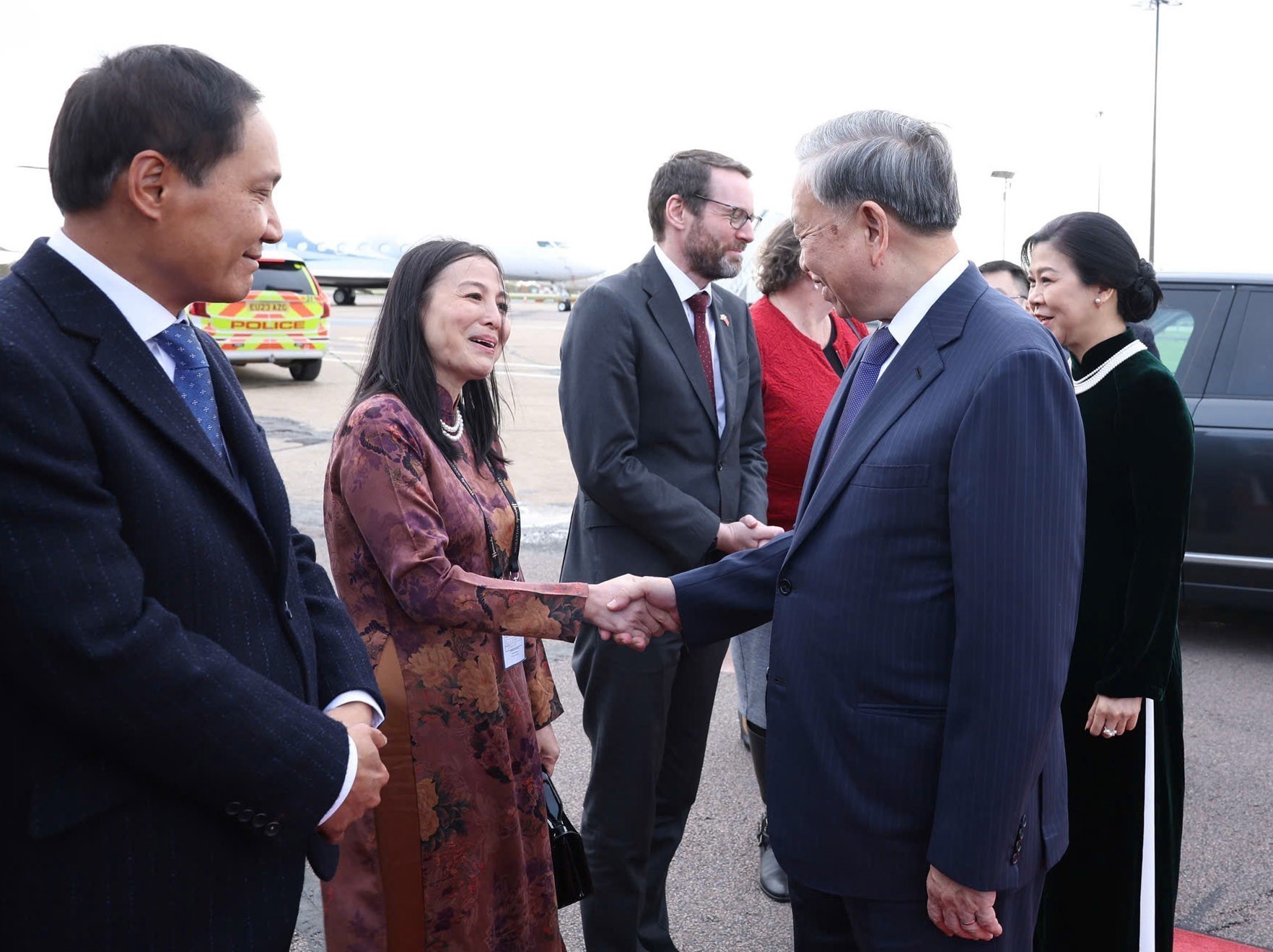 Quan chức Chính phủ Anh tiễn Tổng Bí thư Tô Lâm và Phu nhân. Ảnh: Thống Nhất – TTXVN