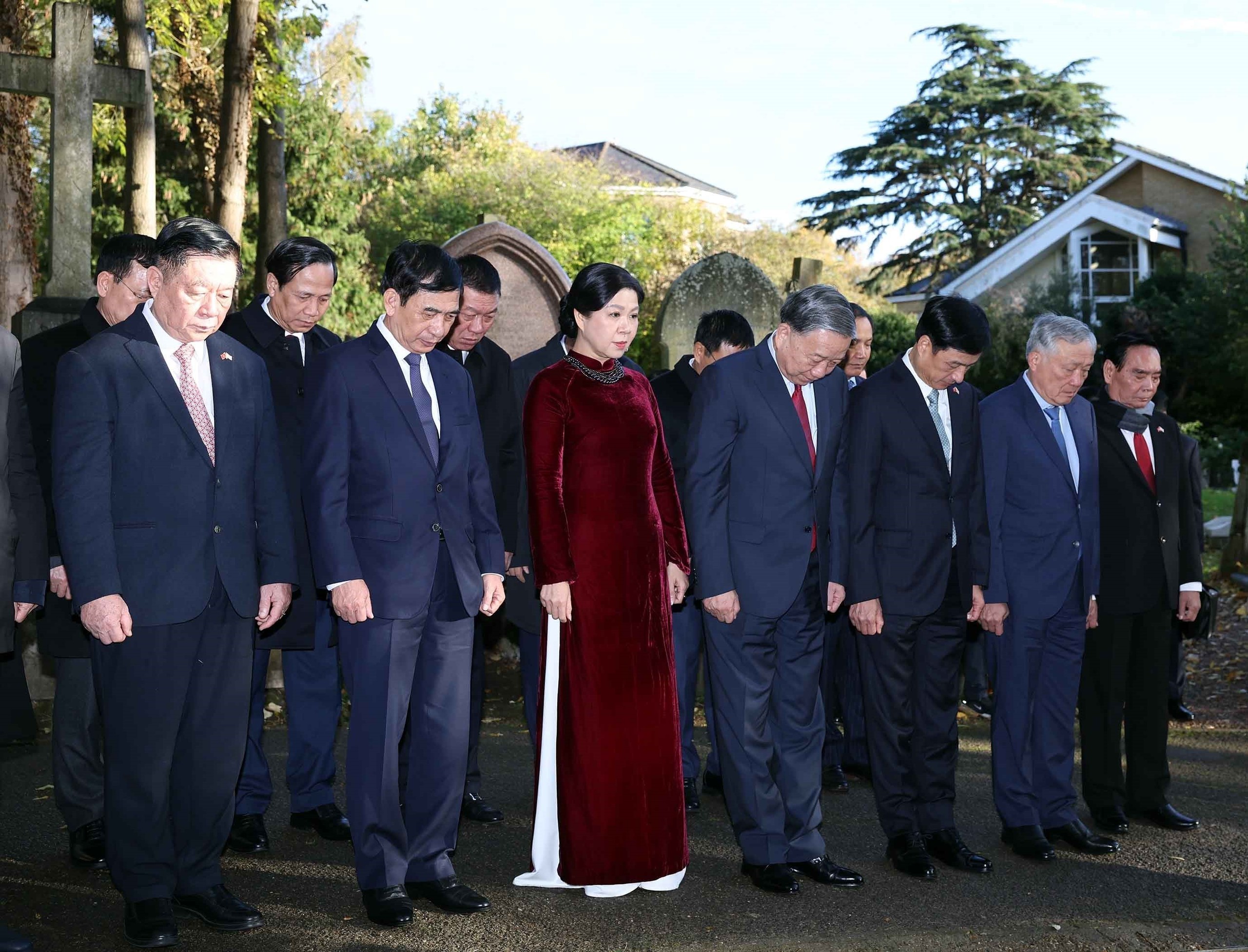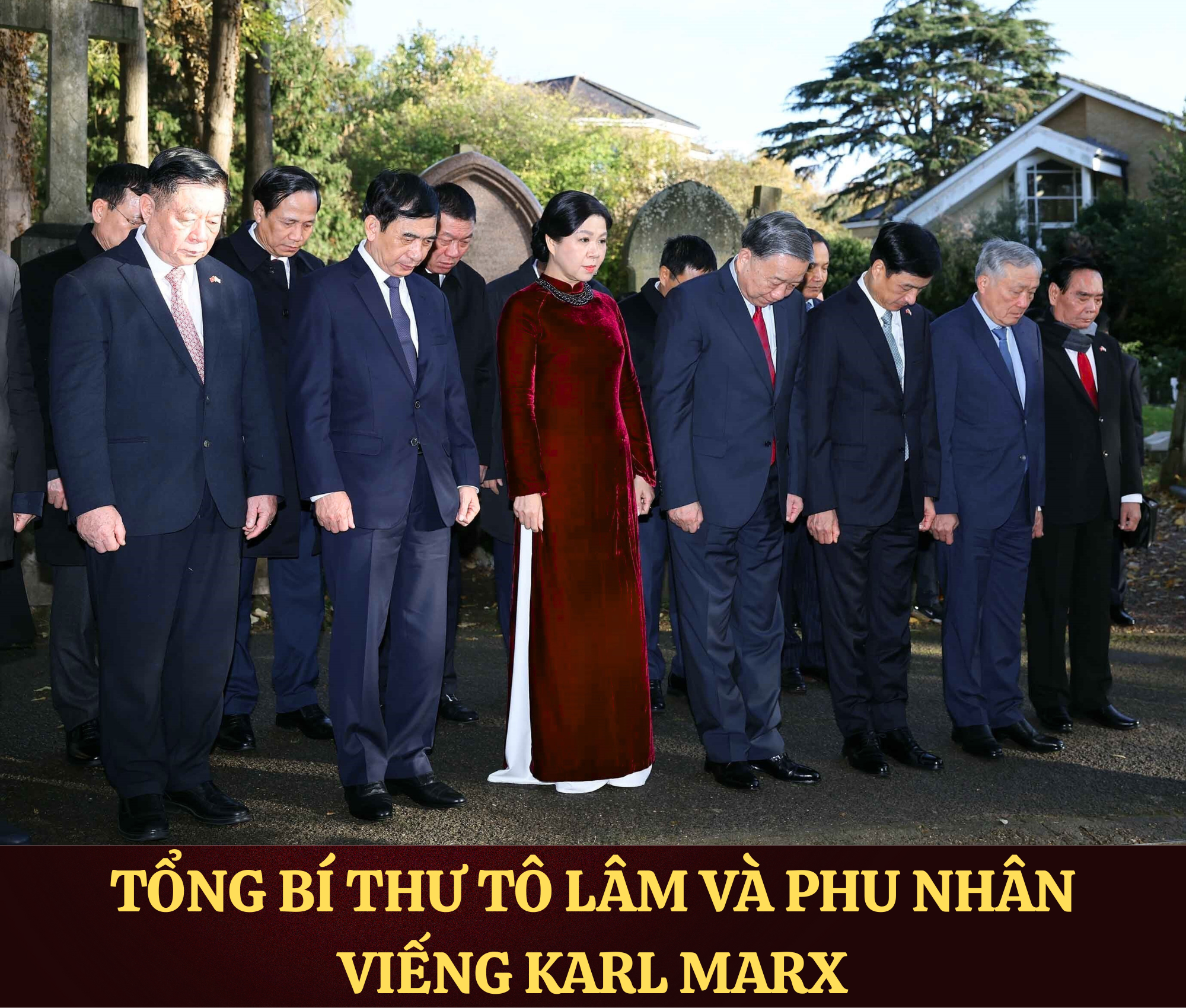 Trong chương trình thăm chính thức Liên hiệp Vương quốc Anh và Bắc Ireland, sáng 28/10/2025, giờ địa phương (chiều cùng ngày, giờ Hà Nội), Tổng Bí thư Tô Lâm và Phu nhân cùng Đoàn đại biểu cấp cao Việt Nam đến đặt vòng hoa viếng tại mộ Karl Marx - Lãnh tụ của giai cấp vô sản, ở nghĩa trang Highgate, thủ đô London.