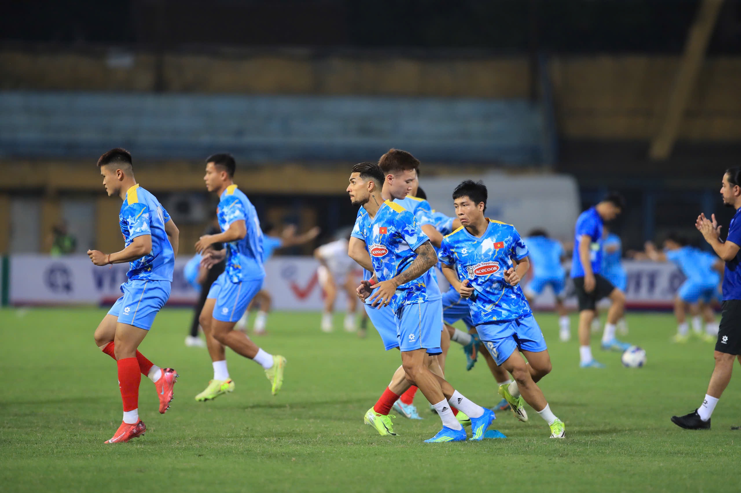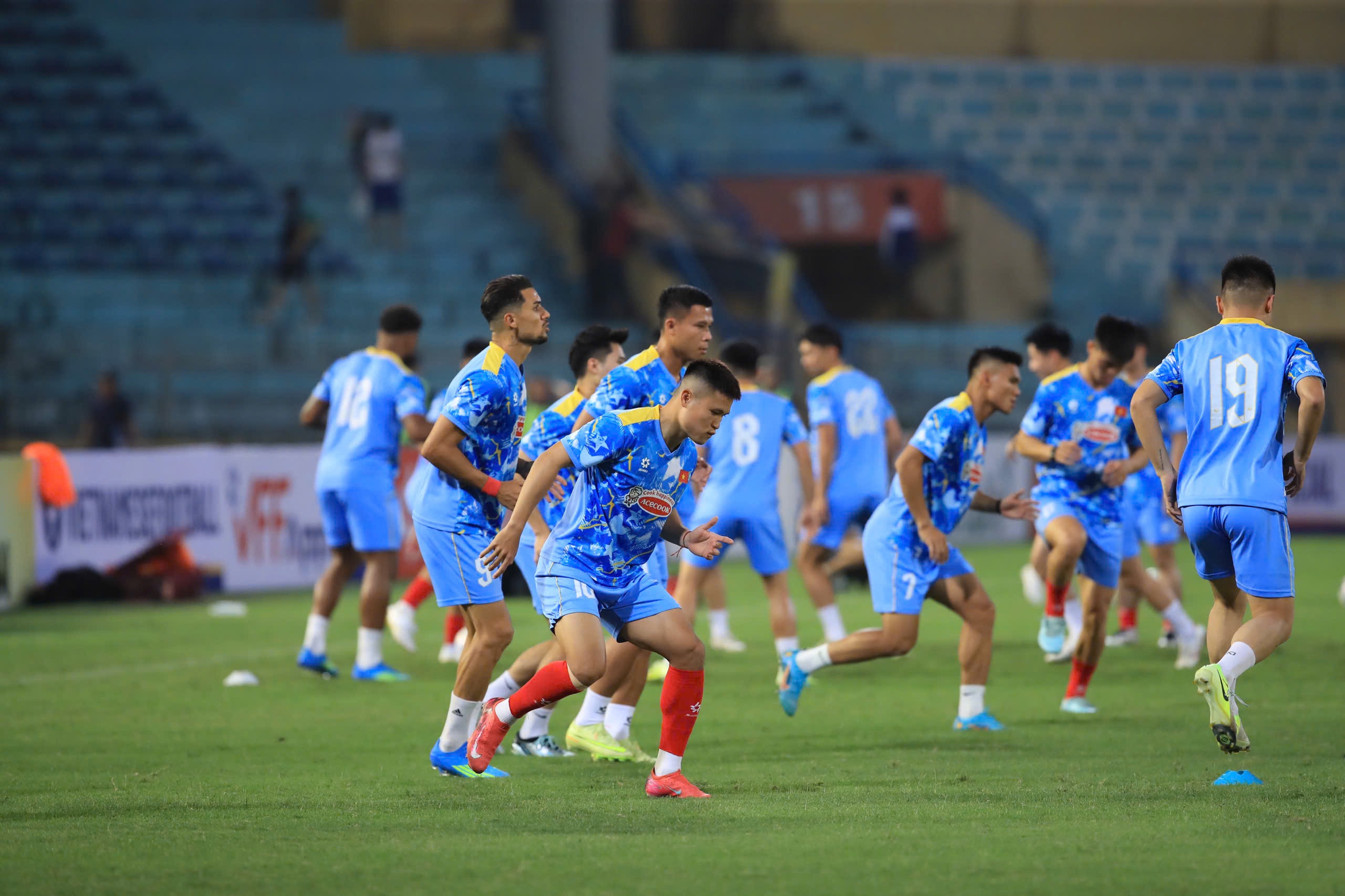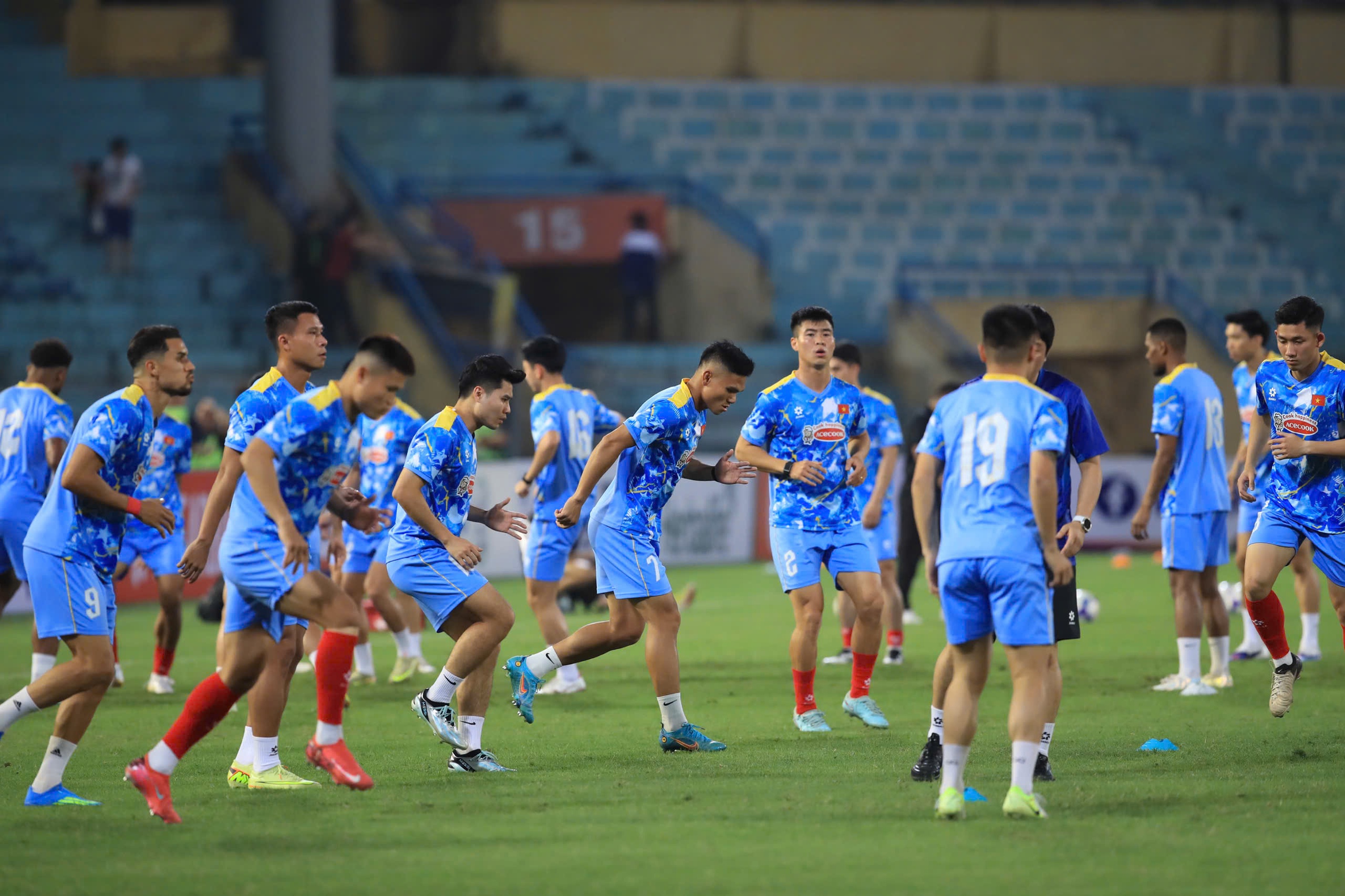 Các cầu thủ ĐT Việt Nam khởi động - Ảnh: Hoàng Linh