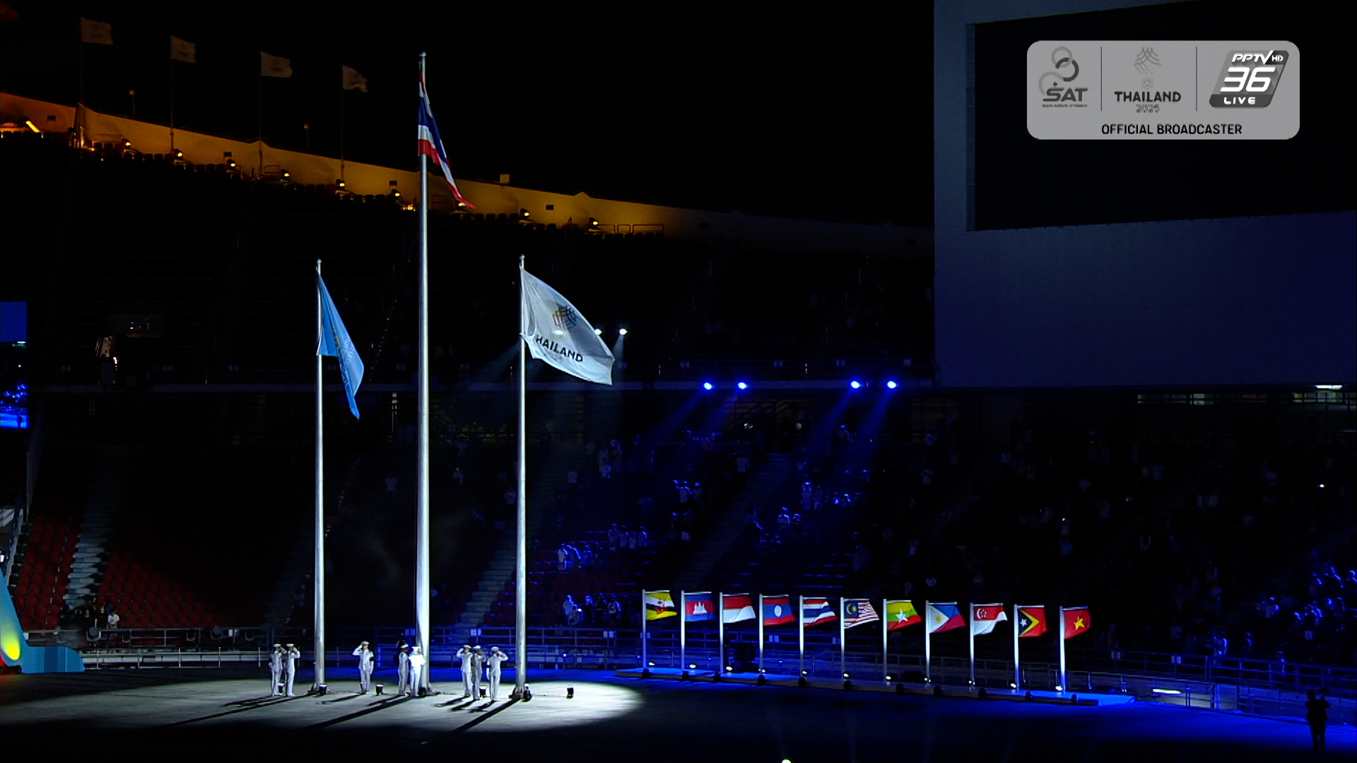 19h53: Tiếp theo là nghi lễ hạ cờ, biểu trương cho việc kết thúc SEA Games 2025.