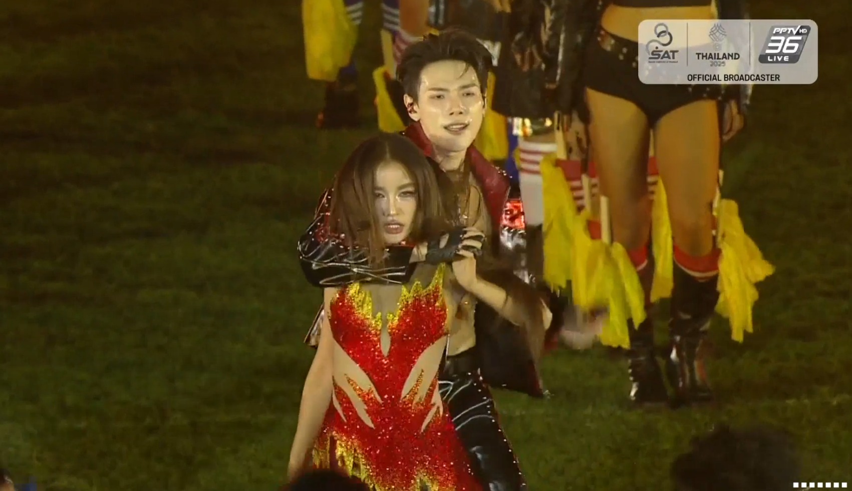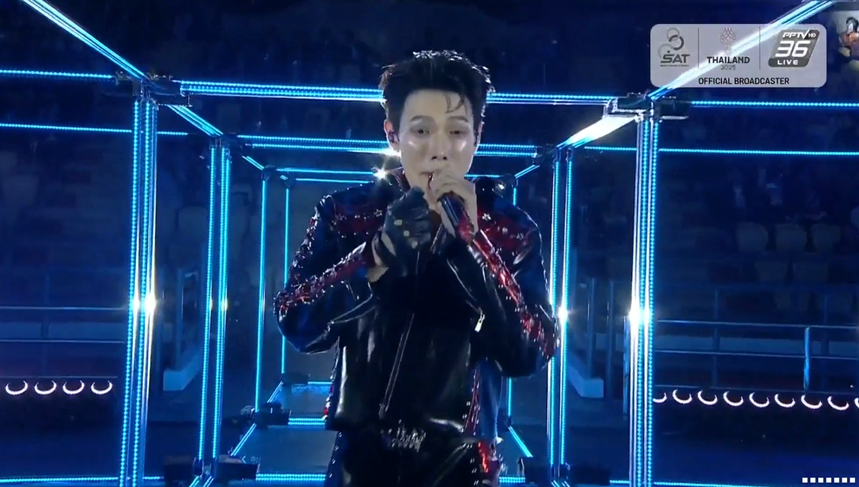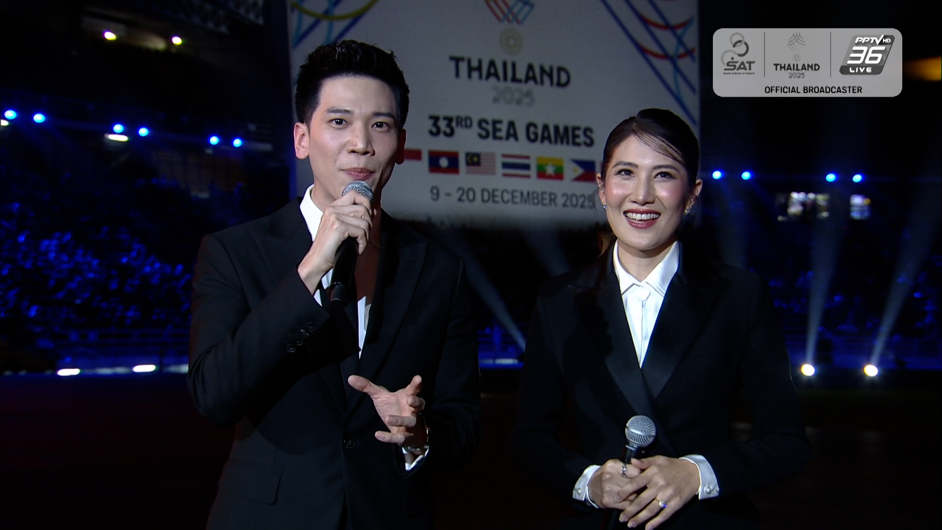 19h07: Phần 1 của lễ bế mạc là màn trình diễn "Âm thanh từ những cuộc tranh tài" bắt đầu! Pithaya Sae-chua, nam ca sĩ kiêm diễn viên và Kratae Rsiam, hai nghệ sĩ nổi tiếng, đã cùng trình diễn những ca khúc tình yêu đầy cảm xúc tại lễ bế mạc SEA Games lần thứ 33 ở sân vận động Rajamangala, trong tiết mục này.