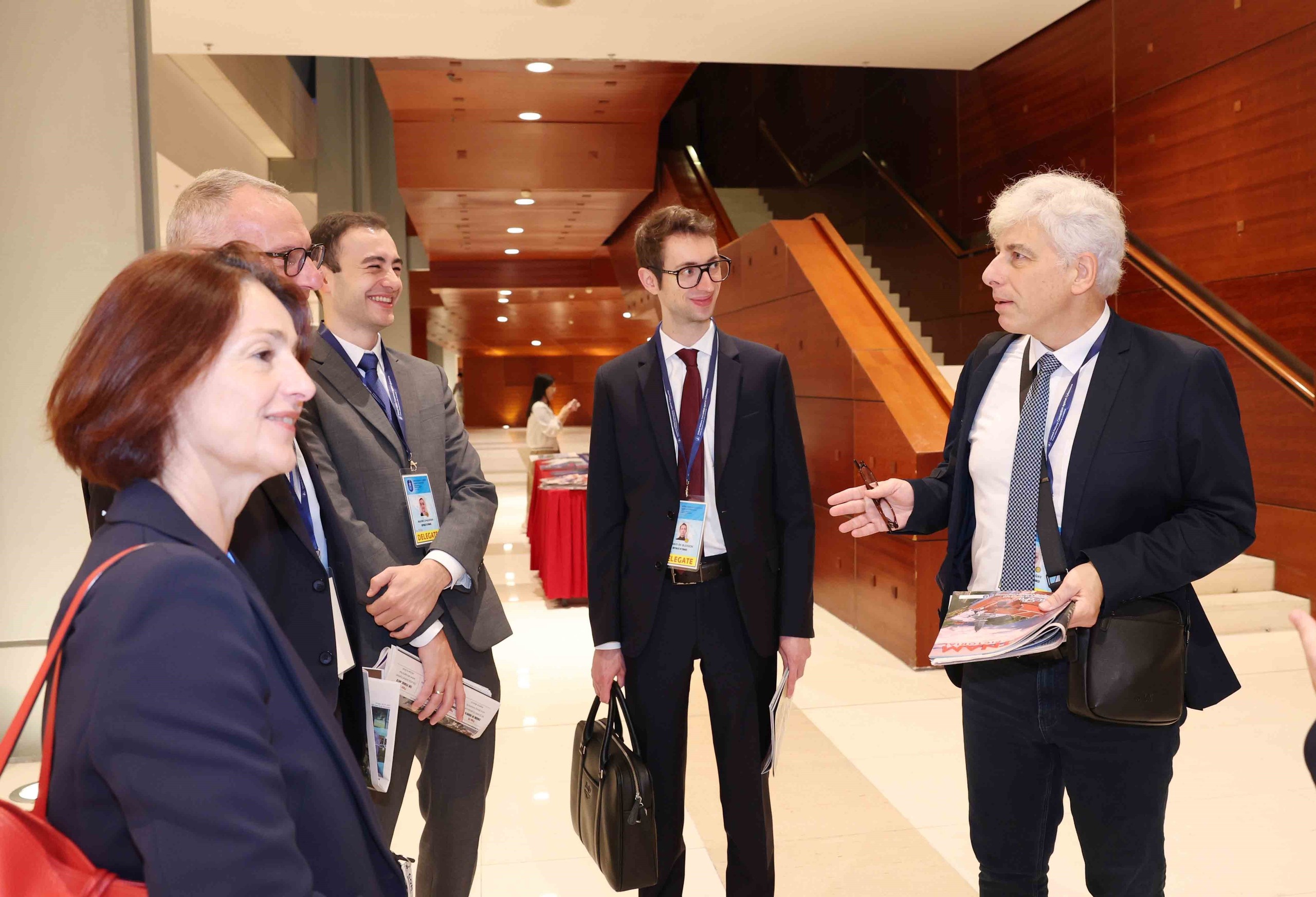 Đại biểu quốc tế tham quan trưng bày ảnh của Thông tấn xã Việt Nam tại Lễ mở ký Công ước Hà Nội, sáng 25/10. Ảnh: Phương Hoa - TTXVN