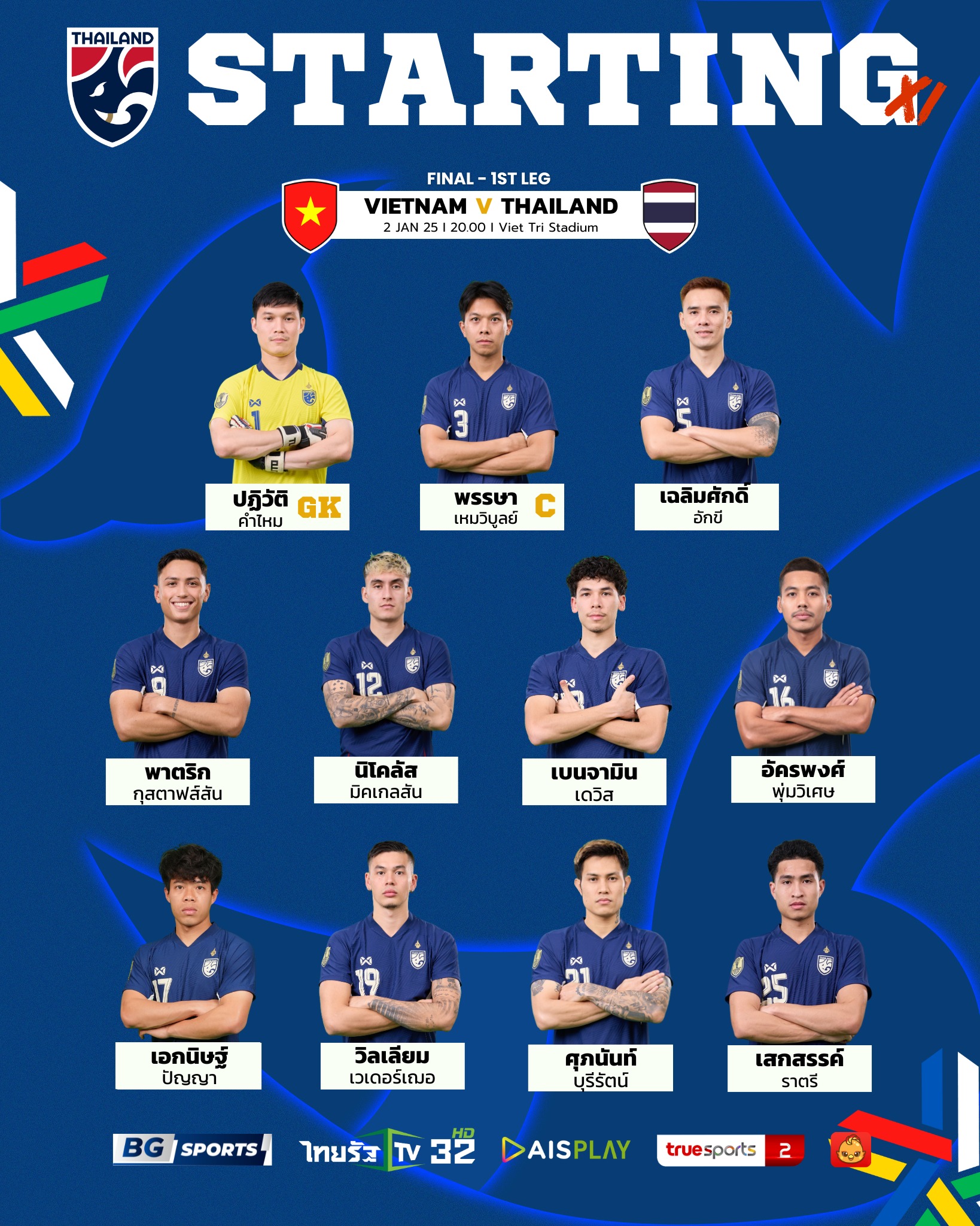 Ngày 1/1/2025, tờ Thairath đã công bố bài phân tích trước trận chung kết lượt đi AFF Cup 2024 giữa đội tuyển Thái Lan và đội tuyển Việt Nam. Trận đấu được tổ chức tại sân Việt Trì, Việt Nam, vào lúc 20h00 ngày 2/1/2025.