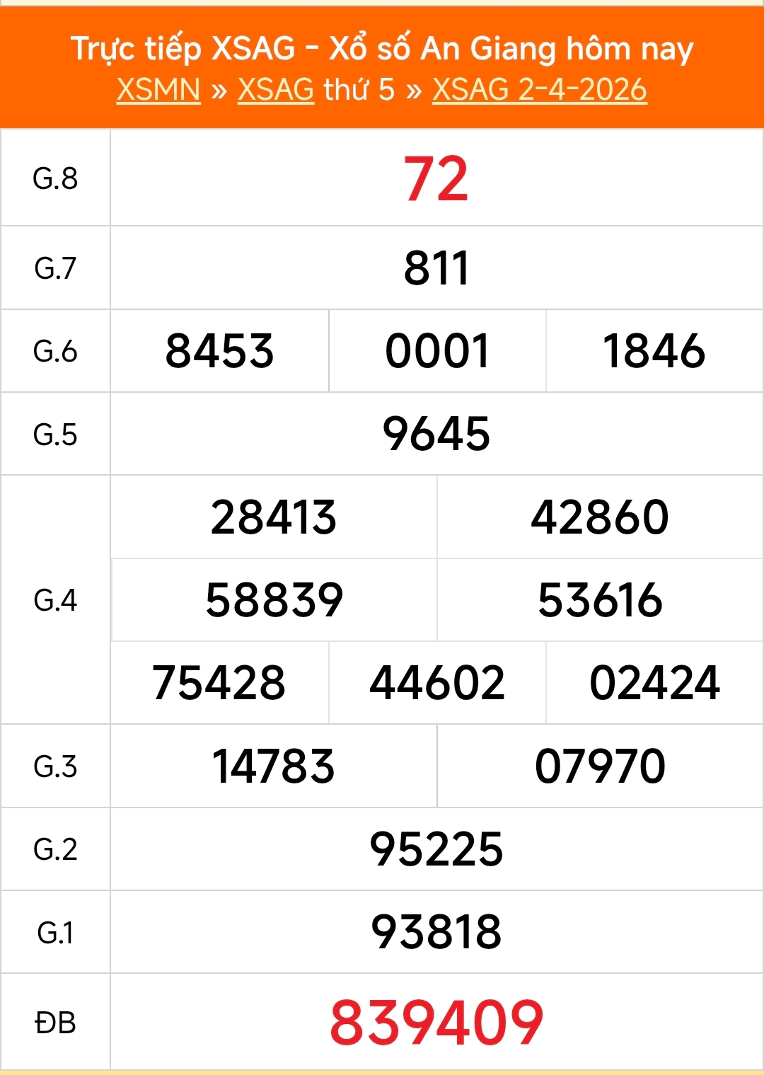 XSAG - Kết quả Xổ số An Giang hôm nay ngày 2/4/2026